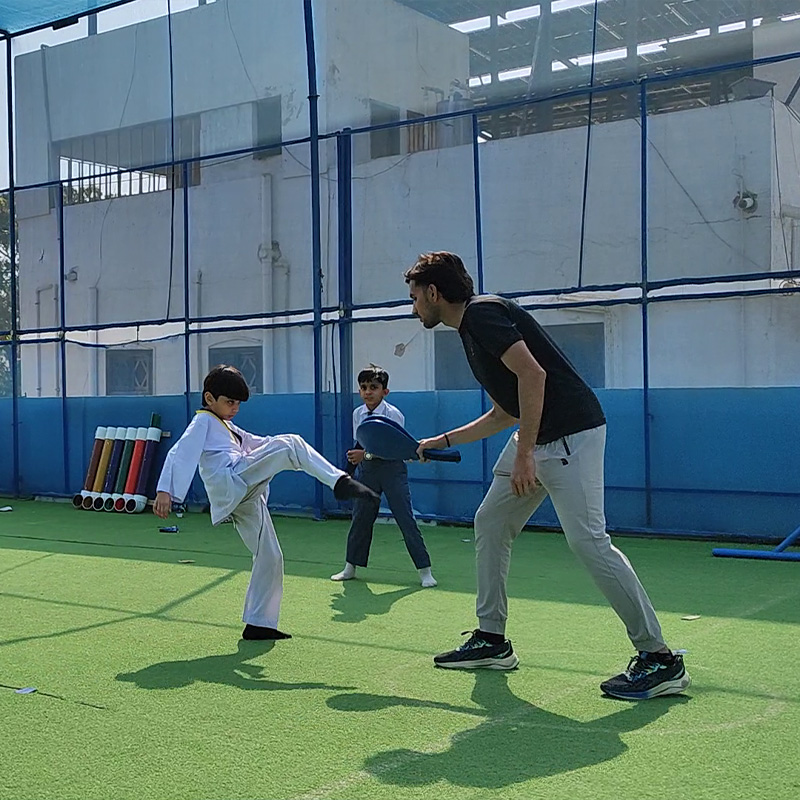 Our Elementary branch focuses on catalysing core skills of the students for superior Academics and Personality development through Plantation, Animal Care, Swimming, Taekwondo, Cricket Coaching, Football, Basketball and Badminton.